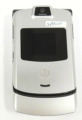 Motorola Razr V3 M V3m Silver Sprint Very Rare Cellular Flip Phone Ebay